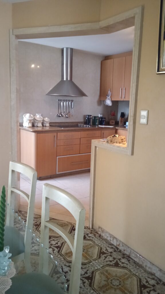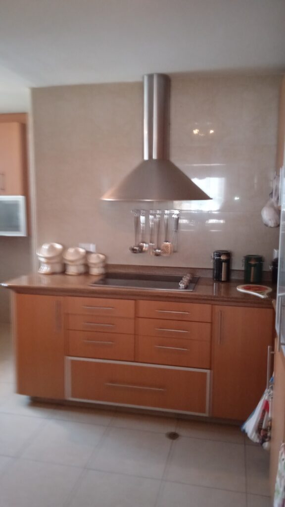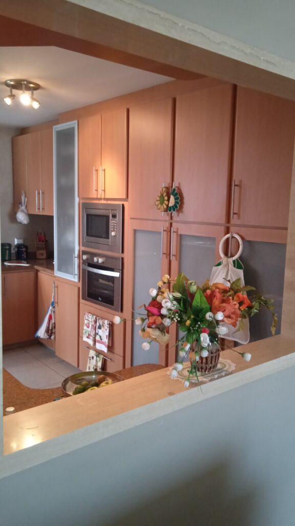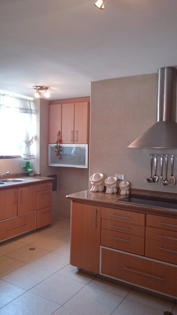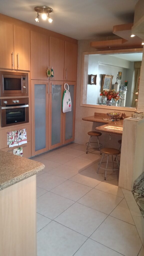 - Área de cocina con cocina empotrada en madera y tope en granito